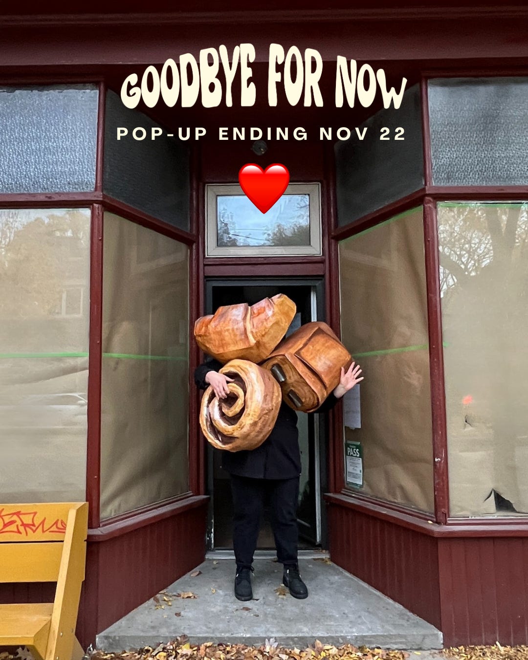When I first started the Fatty Bear pop-up, I was excited to see what I could do as a solo baker and try out this new endeavour. I’ve had a lot of fun, from making tons of pastries (of course), to collaborating with other bakers, to making the papier mache pastries in the windows 🥐 The enthusiasm from the neighbourhood and beyond has been awesome and I’m so grateful for the reception ❤️